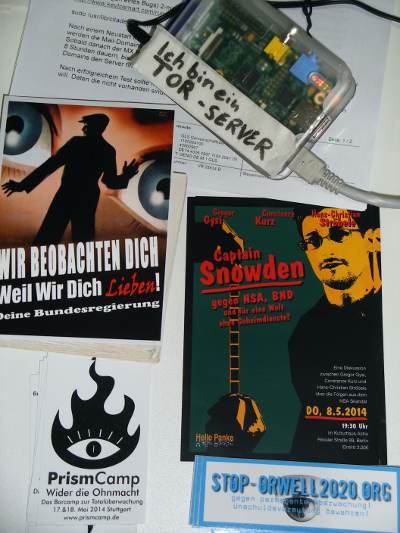 Into the wild... ist das Motto der re:publica in diesem Jahr. 6000 Teilnehmer, 350 Veranstaltungen in Berlin - seit diesem Dienstag läuft die europaweit größte Konferenz für das Leben im digitalen Zeitalter, die re:publica. Unter den "Augen der 'Sicherheits'-dienste" und neben der Einladung zu einer Diskussionsveranstaltung mit Constanze Kurz, Gregor Gysi und Hann-Christian Ströbele zum NSA Skandal (auf der gestern immerhin einige Hundert Menschen teilnahmen)haben wir unseren Tor-Server betrieben. Die Anleitung dazu gibt es hier auf unseren Seiten.