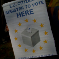 Hier an diesem Infopunkt kann man sich noch schnell für die Europawahl registrieren - in 4 Wochen ist es soweit. |