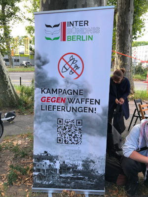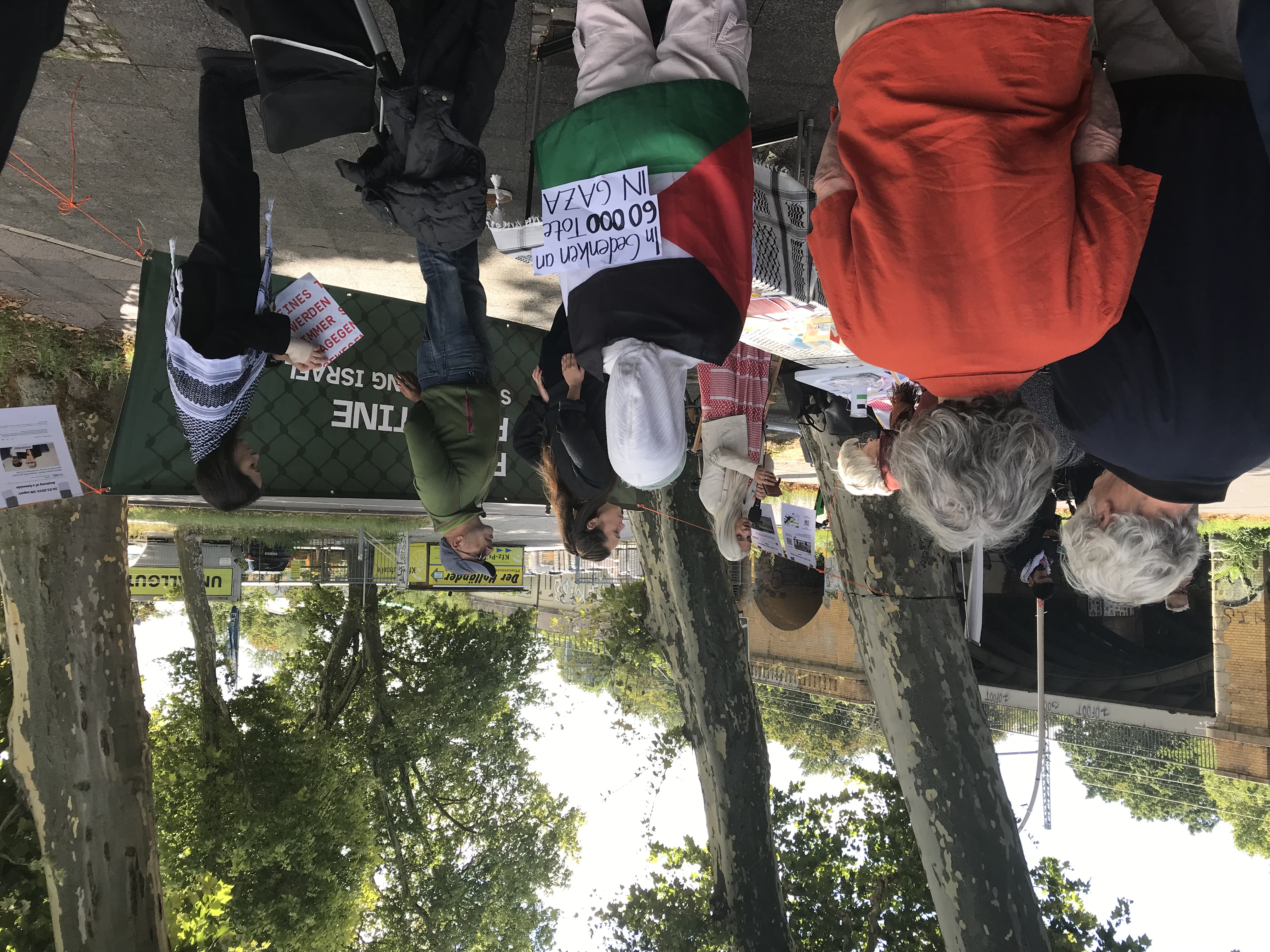 Am gestrigen Nachmittag haben Aktive vom Internationalistische Bündnis Berlin" (interbuendnis-berlin.com), aus der Linken, vom Vereinigten Palästinensischen Nationalkomitee, von Mera25, BDS, Jüdischer Stimme, DKP und von "Studis gegen rechts" am südlichen Ausgang des S-Bahnhofs Treptower Park eine Mahnwache gegen den Völkermord in Gaza und für ein Waffenembargo gegen Israel abgehalten.