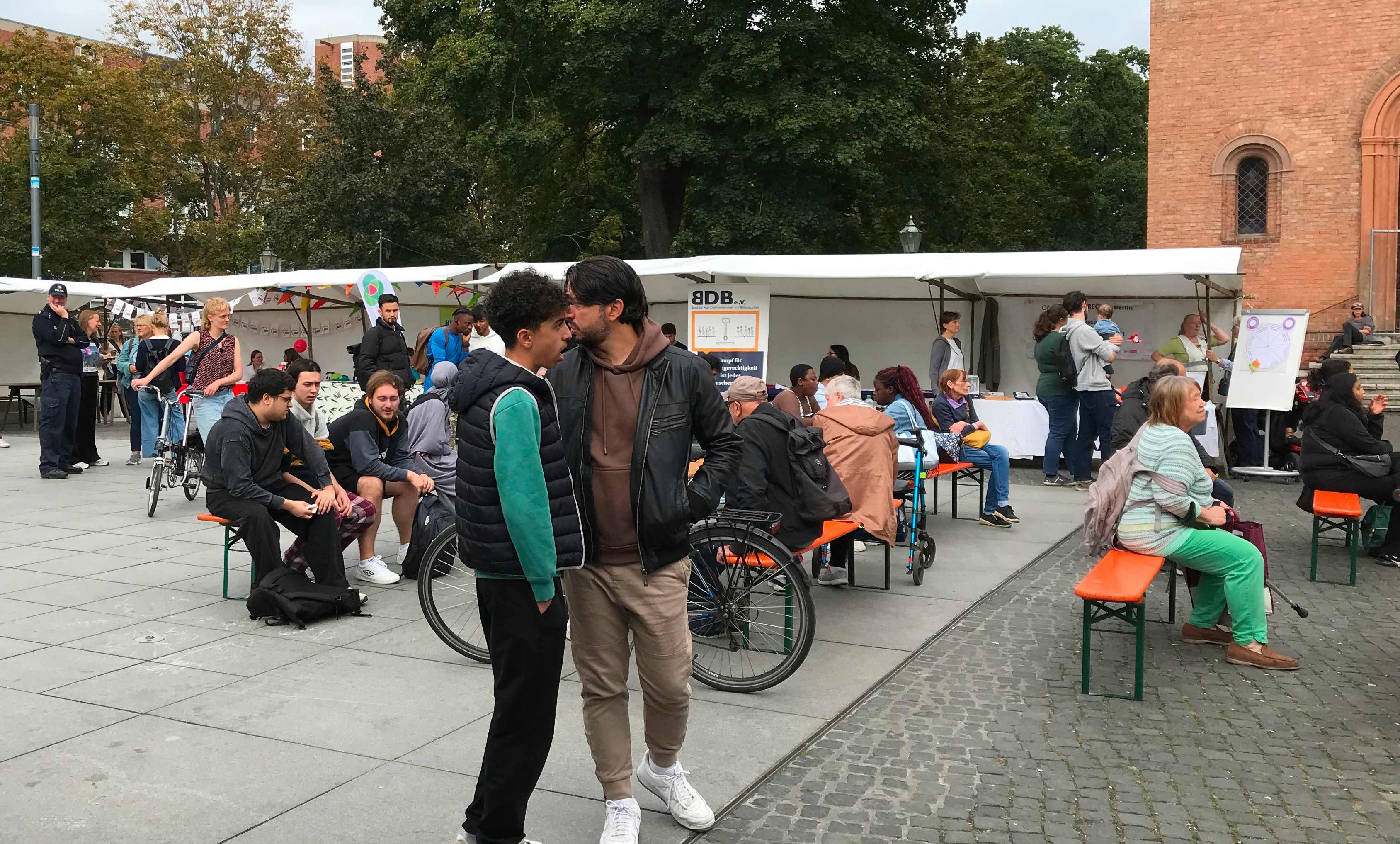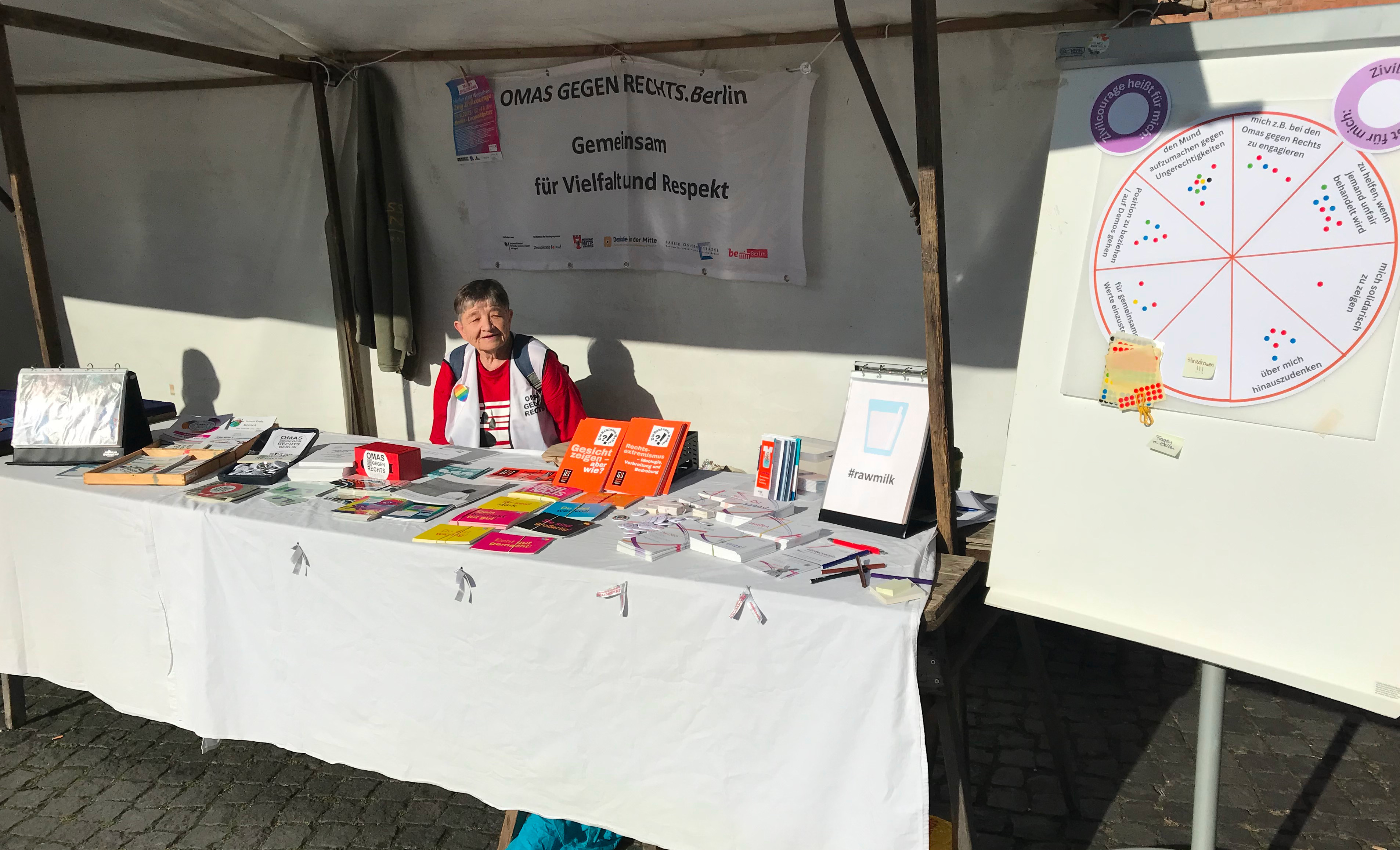 Bei dem Straßenfest zum Tag der Zivilcourage, das von NARUD e.V. organisiert wurde, waren noch ca. 20 weitere NGOs vertreten, wie ReachOut, BDB, die AWO, die Omas gegen Rechts, u.v.a.