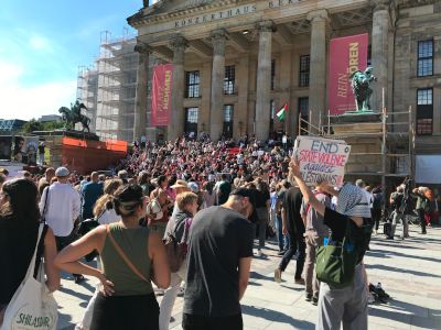 Gestern zum Weltkindertag protestierten Berlinerinnen und Berliner unter klassischer Musik gegen den Genozid an der palästinensischen Bevölkerung in Gaza. Avaaz schreibt dazu als Veranstalter: