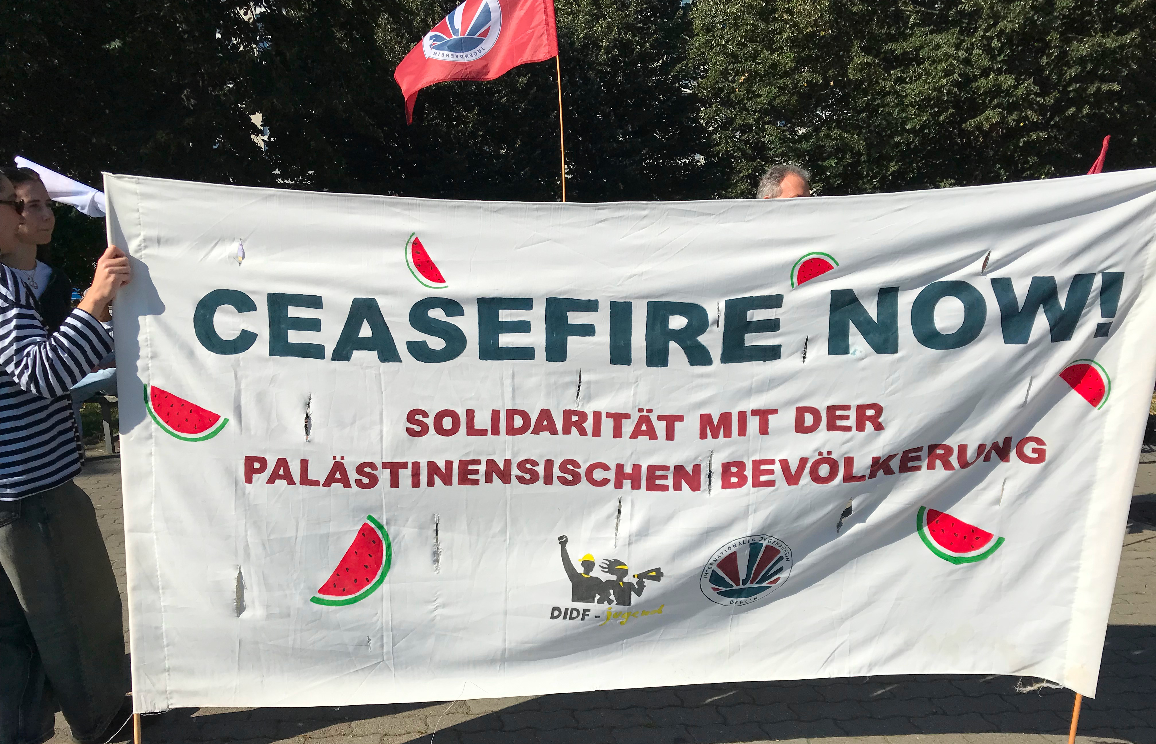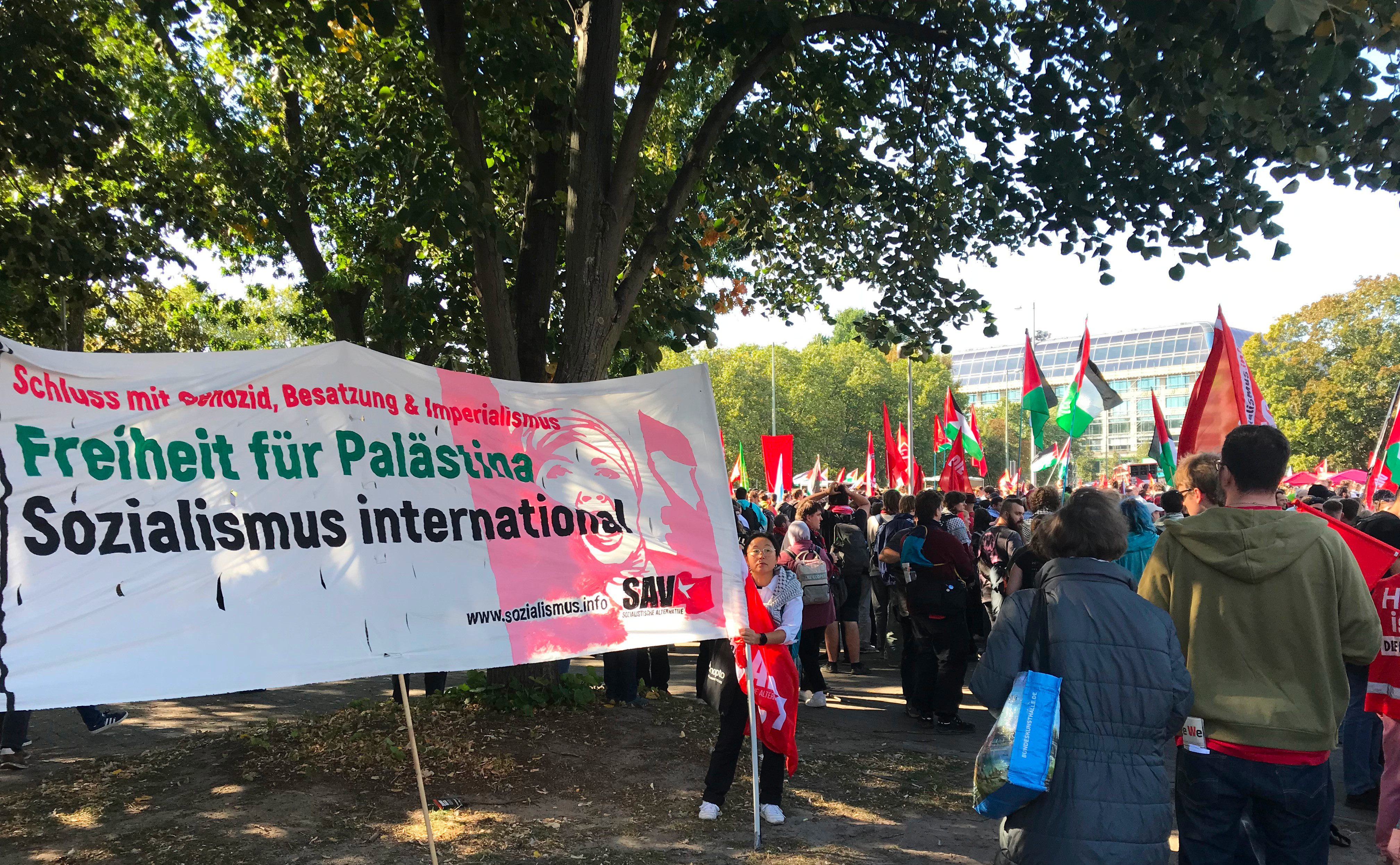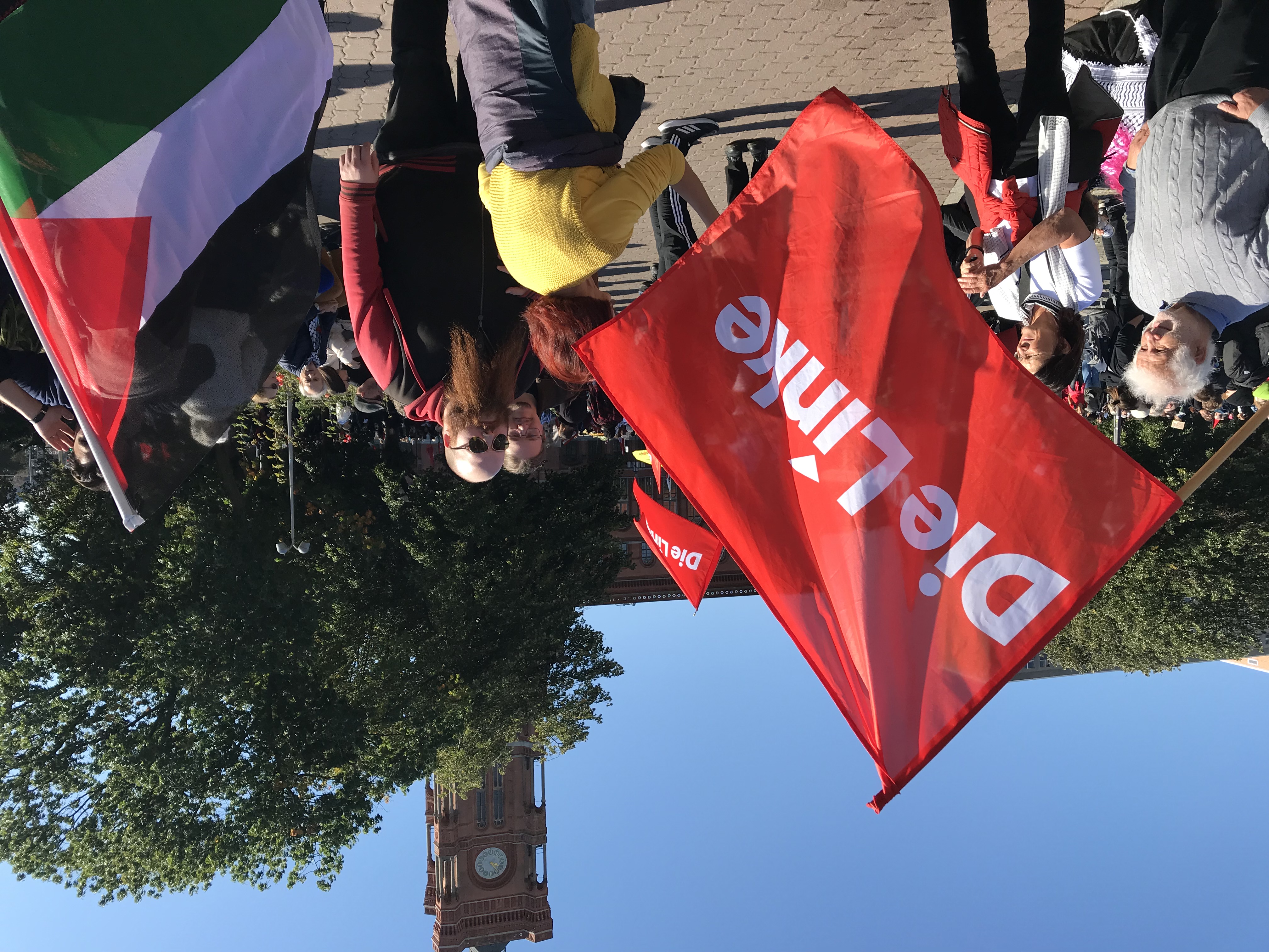 Größte Palästina-Demo seit Jahren Mehr als 6 Stunden waren an die 100.000 Menschen in Berlin bei der größten und längsten Demo gegen die Kriegsverbrechen der israelischen Regierung auf der Straße - die Polizei zählt irgendwann 60.000. Allerdings schreibt der Tagesspiegel: "Eine Polizeisprecherin schloss aber gegen 19.30 Uhr eine größere Zahl nicht aus." Viele TeilnehmerInnen haben zwischen 14 und 22 Uhr auch nur Teilstrecken auf sich genommen. Der unten verlinkte Artikel gibt einen ausführlichen Ablauf des Geschehens. Aktion Freiheit statt Angst e.V. war mit mehreren Aktiven dabei. Wir haben uns gefreut, dass auch mehrere Gewerkschaftsgruppen, u.a. aus GEW und IG-Metall ihre Teilnahme durch Transparente deutlich machten. Auf der Startkundgebung am Neptunbrunnen am Alexanderplatz spricht u.a. der jüdische Musiker Michael Barenboim. Er berichtet von täglich vielen Toten, von leidenden und hungernden Kindern und fehlender medizinischer Versorgung. Dabei vergleicht er die jetzige Situation mit der Nakba (Katastrophe), der Vertreibung und Flucht von etwa 700.000 Palästinensern aus ihrer Heimat im Jahr 1948. Auch die Parteivorsitzende der Linken, Ines Schwerdtner, stellt sich auf die Seite der Demonstrierenden und sagt: "Ich verstehe euren Schmerz, denn das, was in Palästina passiert, ist ein Völkermord." Weiter sagte sie: "Kanzler und Minister reden, aber sie handeln nicht. Sie sprechen von ‘Staatsräson’, während Krankenhäuser in Schutt und Asche gelegt werden. Sie schweigen zum Völkermord – und machen sich mitschuldig." Die Tatsache des Völkermords haben UN Gremien nach ihren Untersuchungen festgestellt und auch der Internationale Strafgerichtshof in Den Haag hat in seiner Forderung nach Verhaftung des israelischen Ministerpräsidenten dies festgestellt. Nachdem die Demo den Großen Stern erreicht hat, beginnt dort um 17h eine Kundgebung mit vielen RednerInnen und Künstlern. Auch hier spricht der jüdische Musiker Michael Barenboim erneut: "Israels Völkermord ist der Versuch, Palästinas Vergangenheit, Gegenwart und Zukunft zu zerstören". Der frühere Grünen-Politiker Basem Said nannte das Vorgehen des israelischen Militärs "die systematische Zerstörung eines Volkes, Stein für Stein, Körper für Körper" und beschuldigte die deutsche Regierung. Sie "beschönige den Genozid" und kriminalisiere Proteste in Deutschland.Im weiteren Verlaufen sprachen Moderatorin und Schauspielerin Pegah Ferydoni, Riad Othman von der Hilfsorganisation Medico International, der Rapper Massiv, die Berliner Hip-Hop-Formation "K.I.Z.". Mit ihren Liedern "Görlitzer Park" und dem bekannten Song "Hurra die Welt geht unter" endet die Veranstaltung. Kommentar: RE: 20250928 All Eyes on Gaza Wer hätte reagieren können und müssen, das waren die IDF und die israelische Regierung. Bo., 10.10.25 16:57 Kommentar: RE: 20250928 All Eyes on Gaza Auch noch wichtig zur Gaza-Demo in Berlin Be., 28.09.25 11:41 Kommentar: RE: 20250928 All Eyes on Gaza DRK-Leiter zu Gaza: Be., 20.10.25 11:45 Kategorie[25]: Schule ohne Militär Short-Link dieser Seite: a-fsa.de/d/3Kw Link zu dieser Seite: https://www.a-fsa.de/de/articles/9294-20250928-all-eyes-on-gaza.html Link im Tor-Netzwerk: http://a6pdp5vmmw4zm5tifrc3qo2pyz7mvnk4zzimpesnckvzinubzmioddad.onion/de/articles/9294-20250928-all-eyes-on-gaza.html Tags: #Gaza #Genozid #Israel #Palästina #Demo #Hunger #Barenboin #Schwerdtner #SchuleohneMilitär #Atomwaffen #Militär #Bundeswehr #Aufrüstung #Waffenexporte #Drohnen #Frieden #Krieg #Friedenserziehung #Menschenrechte #Zivilklauseln Erstellt: 2025-09-28 09:08:17 Aufrufe: 1108 Kommentar abgeben |