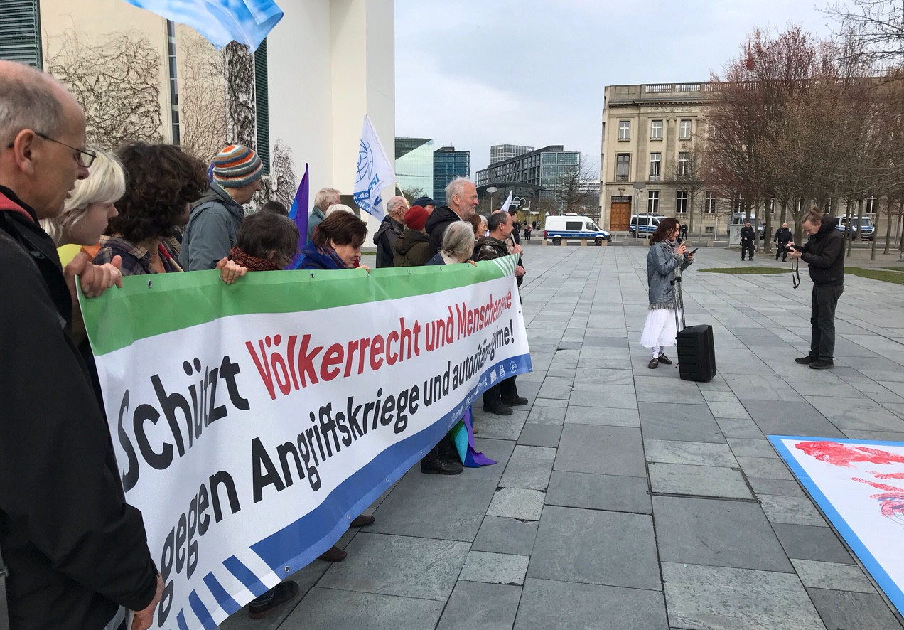Vor dem Bundeskanzleramt in Berlin haben sich gestern Mittag Aktive vom Netzwerk Friedenskooperative, IPPNW, der DFG-VK versammelt, um gegen den Krieg der USA und Israel gegen den Iran zu protestieren. Aktive von Aktion Freiheit statt Angst waren natürlich auch dabei. Die Protestierenden waren sich einig: